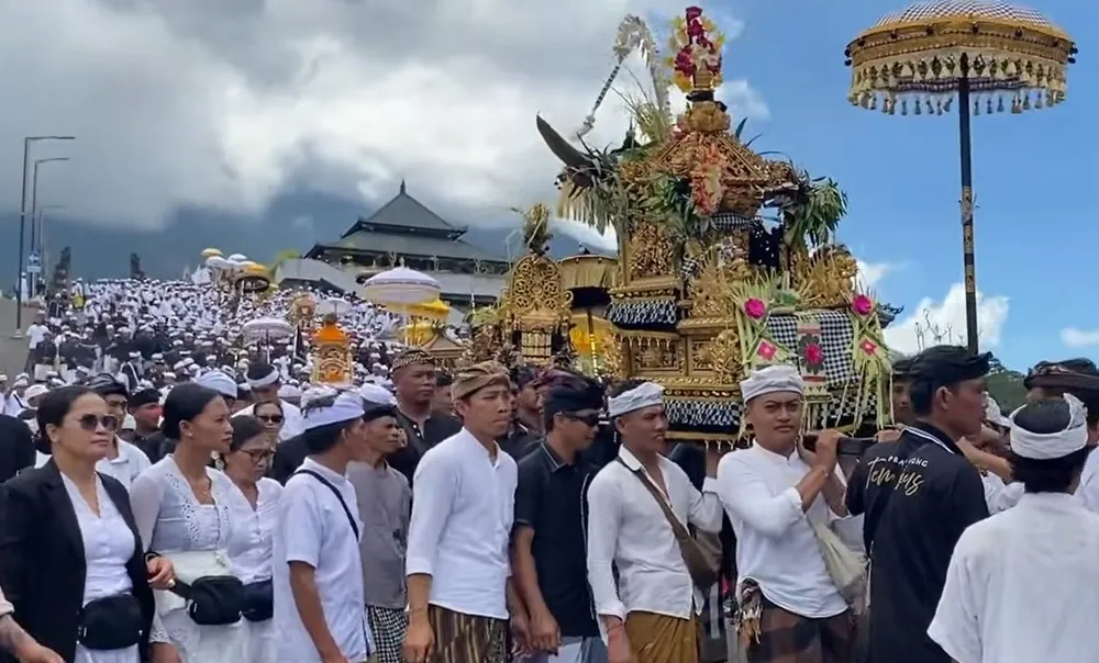 Usai ritual di Tegal Suci, seluruh iring-iringan kembali ke Pura Agung Besakih dengan berjalan kaki. Tradisi ini menjadi bagian penting dari Karya Ida Bhatara Turun Kabeh yang setiap tahun selalu menarik partisipasi umat dari berbagai daerah di Bali. (BEM)