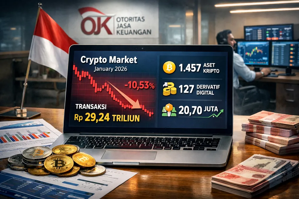 Jakara, Balienews.com – Otoritas Jasa Keuangan (OJK) mencatat nilai transaksi aset kripto di Indonesia mencapai Rp29,24 triliun sepanjang Januari 2026, turun 10,53 persen dibandingkan Desember 2025 sebesar Rp32,68 triliun. Penurunan ini disampaikan Kepala Eksekutif Pengawas Inovasi Teknologi Sektor Keuangan, Aset Keuangan Digital, dan Aset Kripto (IAKD) OJK Hasan Fawzi, Selasa di Jakarta, yang menyebut pelemahan terjadi seiring tren penurunan harga kripto global.